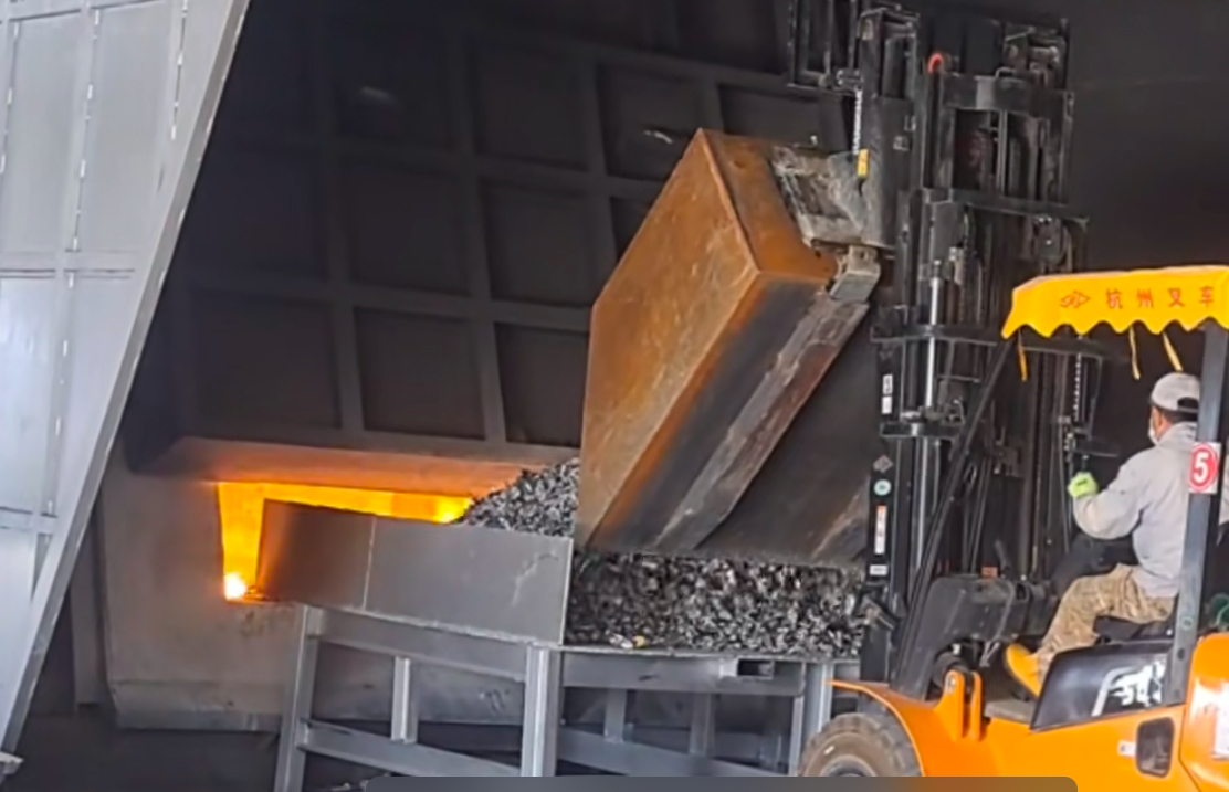 經(jīng)過路友破碎機(jī)處理后的物料被投入高溫爐溶化